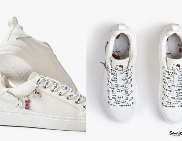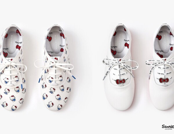 Anothersole’s signature shoe is the Anytime Flats, a cross between a loafer, a ballet flat, and sneakers. For this collection, you can find the flats available with recurring Hello Kitty prints if you want to wear your love for Hello Kitty loud and proud. Otherwise, there’s another more subtle, understated version that features a white leather body, accented with themed laces and charms. Each pair retails for $179.90.