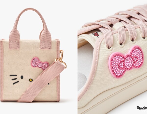 The collection will have eight shoe styles and two mini bags. Both feature Hello Kitty motifs, from the mouthless cat to her signature bow.