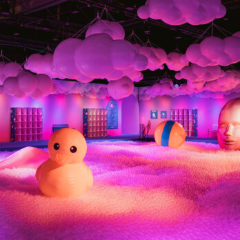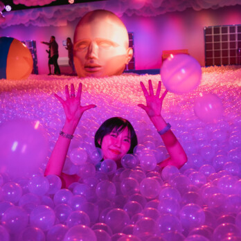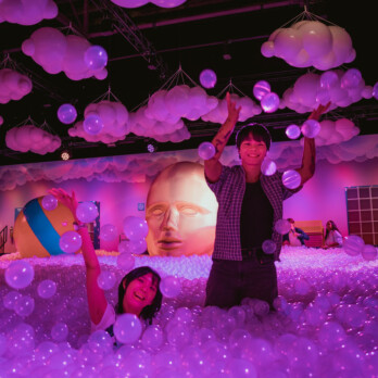 This is basically a giant ball pit, with life-sized artwork around, including a giant figure taking a “bath” in the sea of bubbles. The space is washed in violet and indigo hues, adding a cool purple look to your photographs.