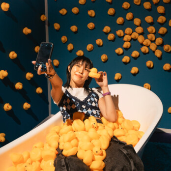 You’ll have to queue but you won’t have to deal with lots of clutter in the background for this photo spot, as it’s just you, the camera, and a bathtub filled with yellow rubber ducks.