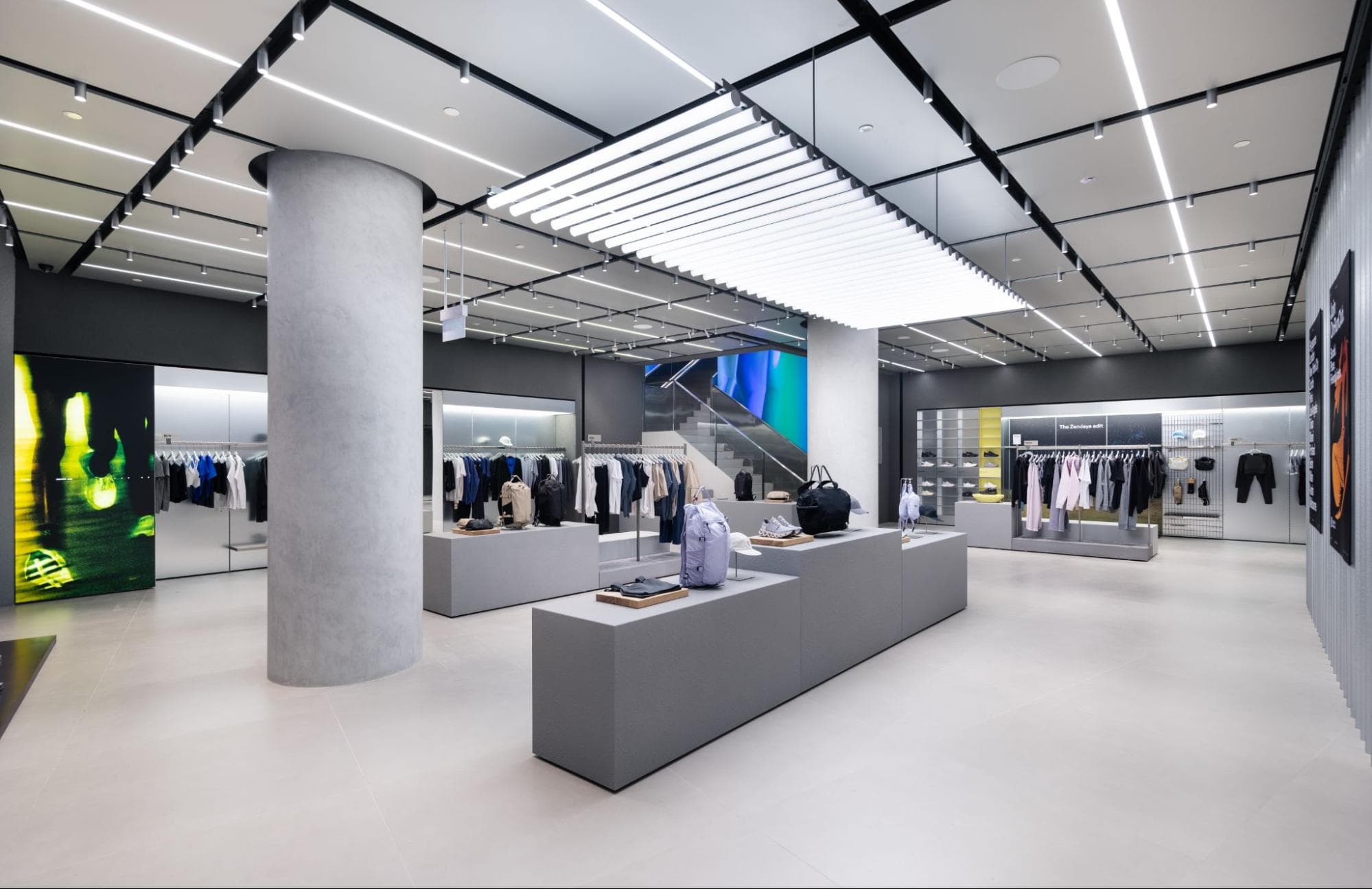 The first level of On’s flagship store is dedicated to footwear and technical apparel. The space also features “ZONE DREAMERS”, an ongoing campaign with globally acclaimed celebrity Zendaya. Meanwhile, the second level hosts tennis products, a lifestyle footwear wall, and an outdoor section.