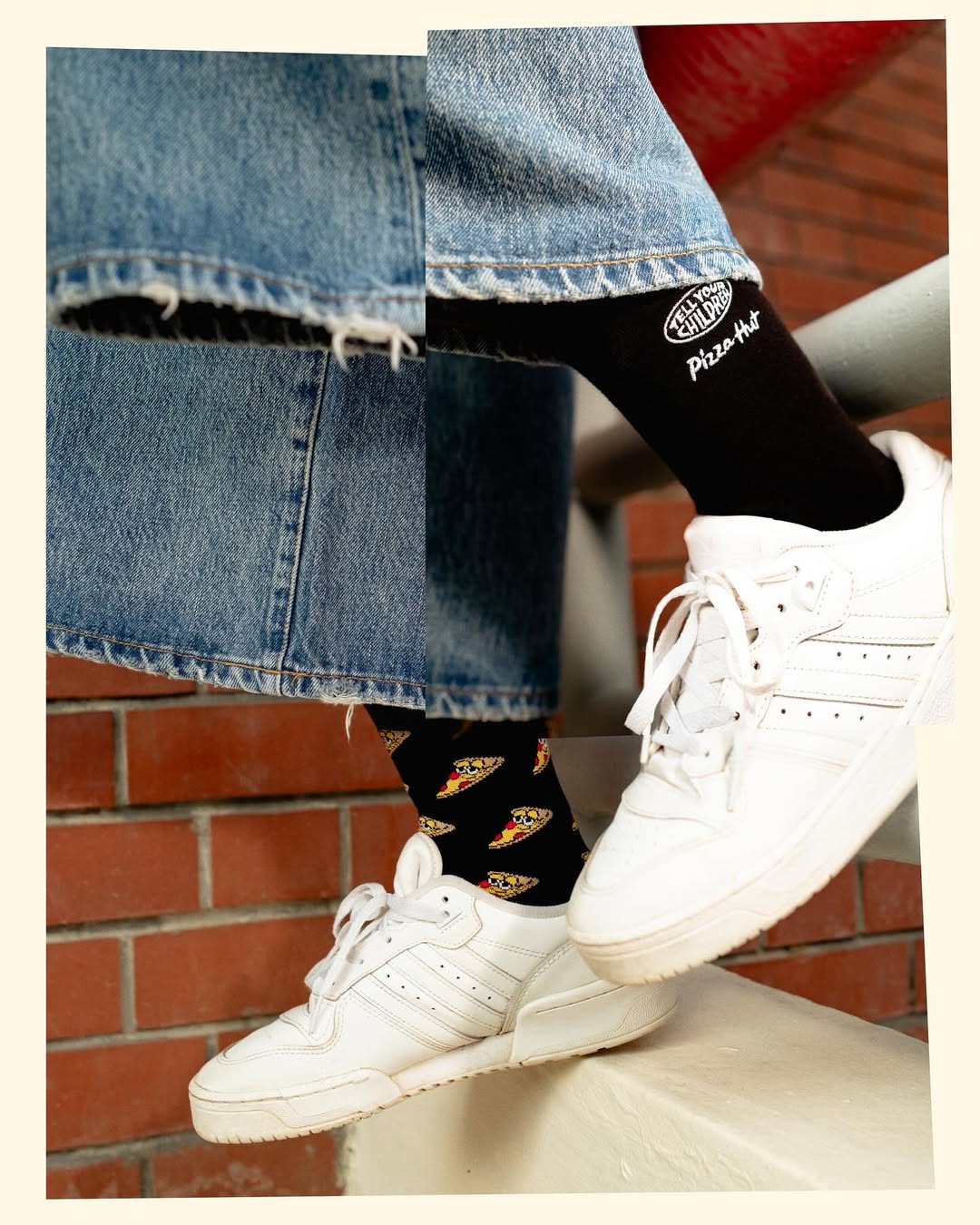 The name of the collection, “Perfectly Imperfect”, is inspired by the beauty of imperfections in Pizza Hut’s creations. The merchandise seeks to embody the theme through intentionally mismatched prints on the Crew Socks ($15).